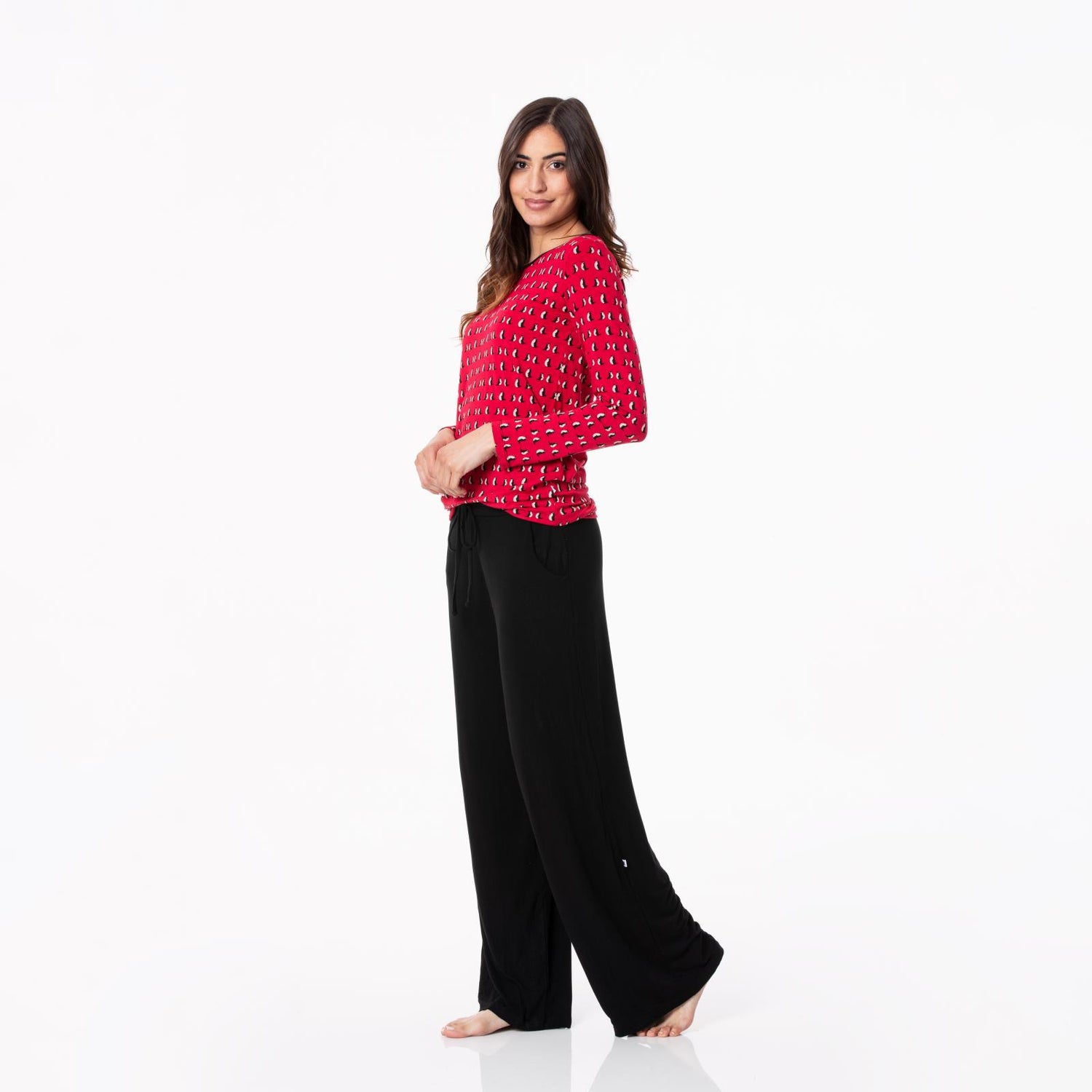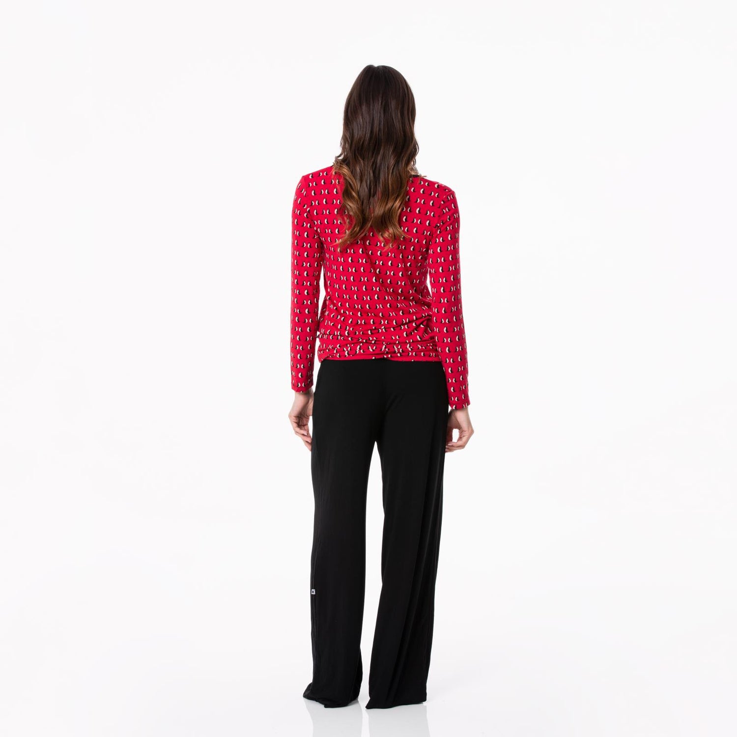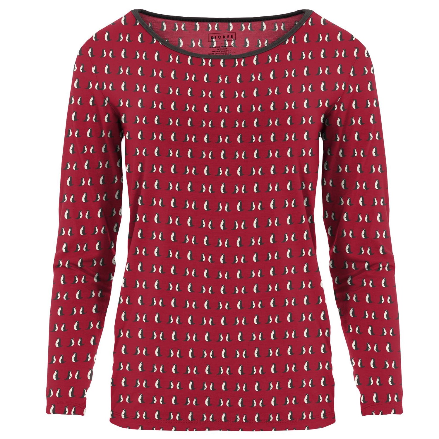 Women's Print Long Sleeve Relaxed Tee in Crimson Penguins