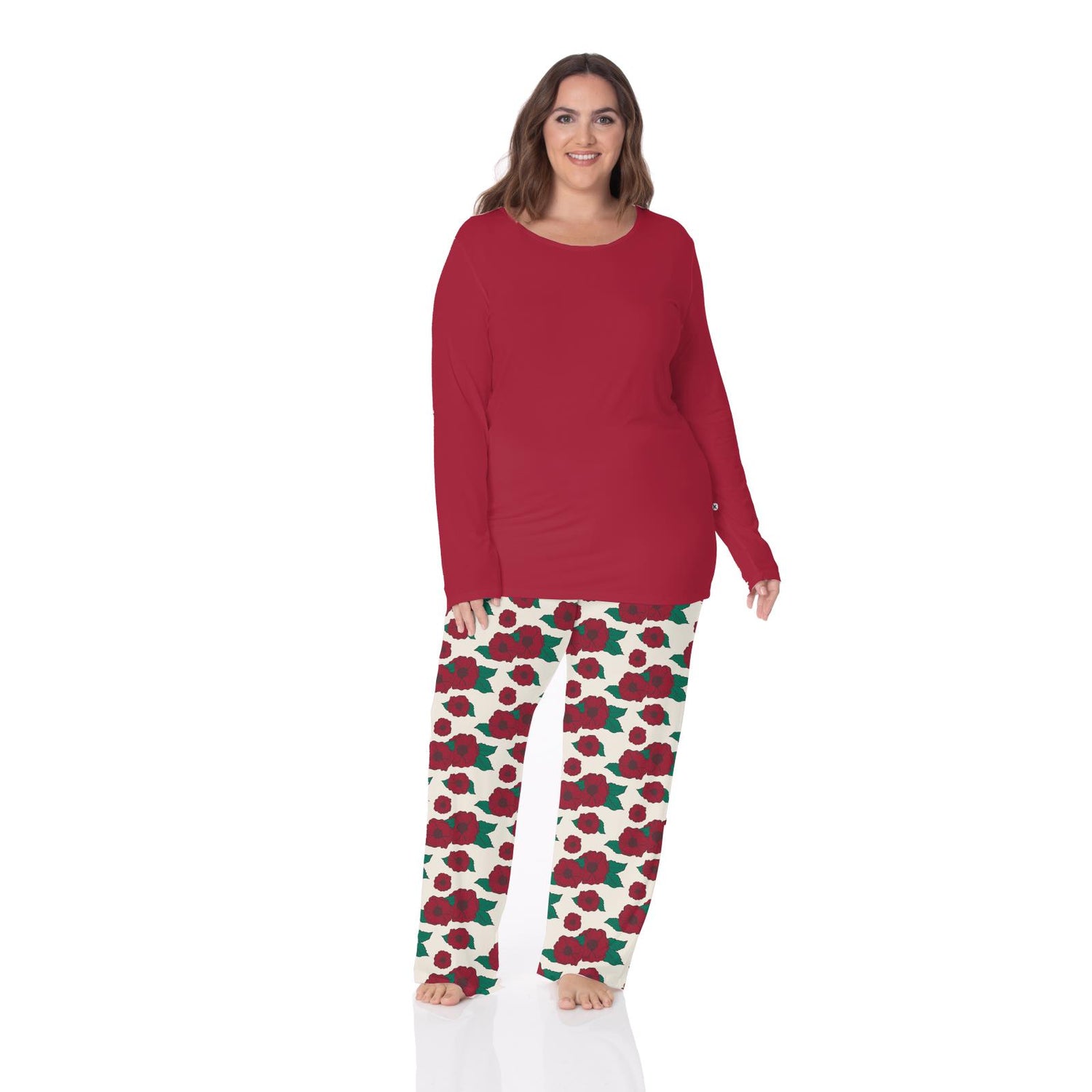 Women's Print Long Sleeve Relaxed Tee & Pajama Pants Set in Holiday Poppies