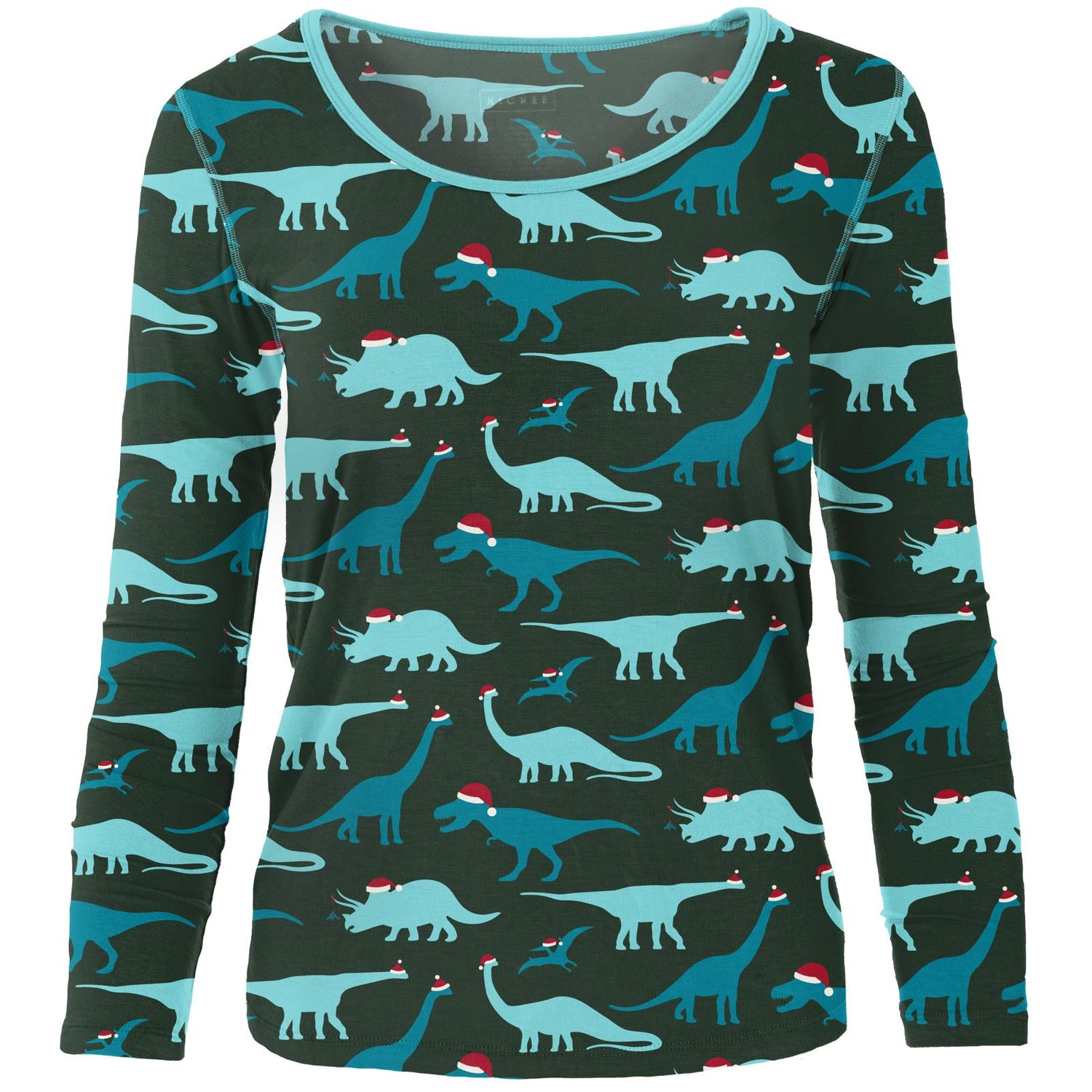 Women's Print Long Sleeve Scoop Neck Tee in Santa Dinos