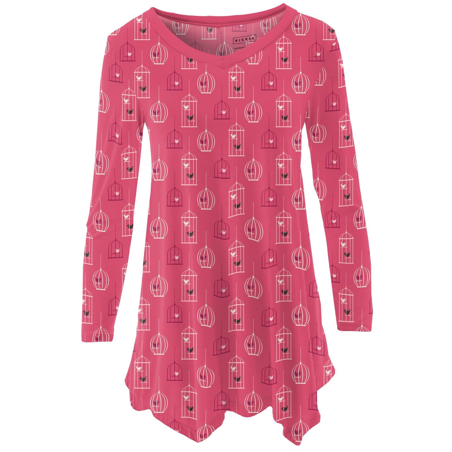 Women's Print Long Sleeve Tunic in Winter Rose Birdcage