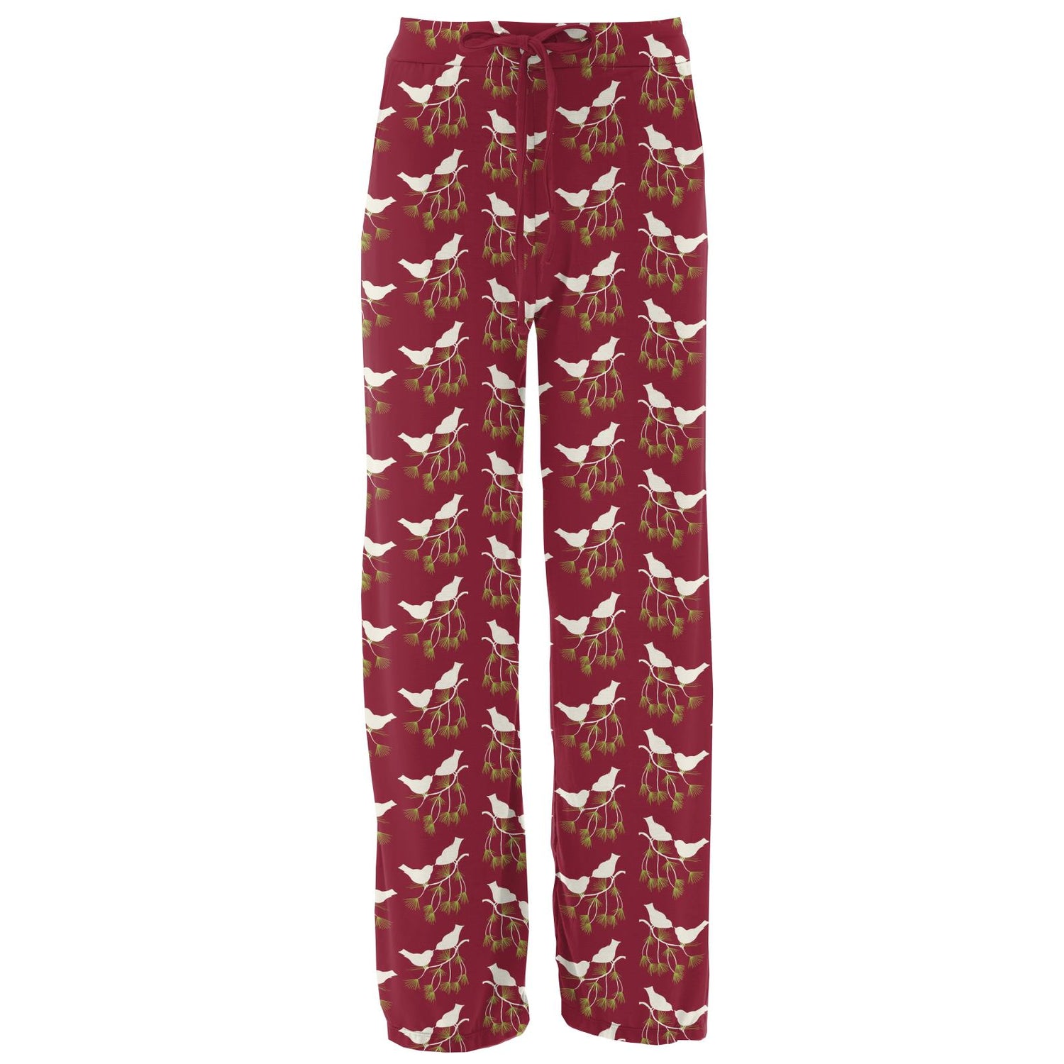 Women's Print Lounge Pants in Crimson Kissing Birds