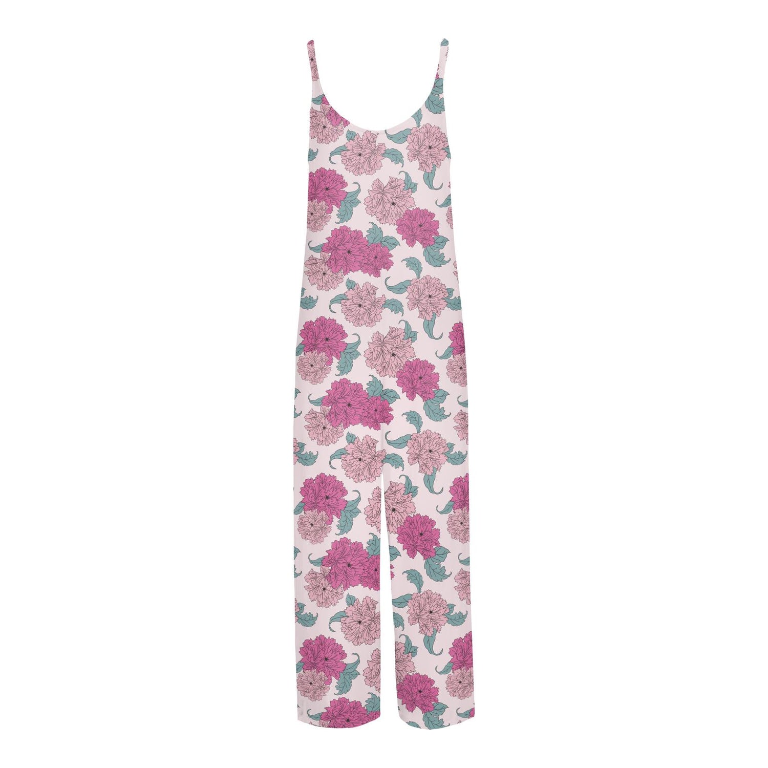 Women's Print Lounge Romper in Shrinking Violet Peonies