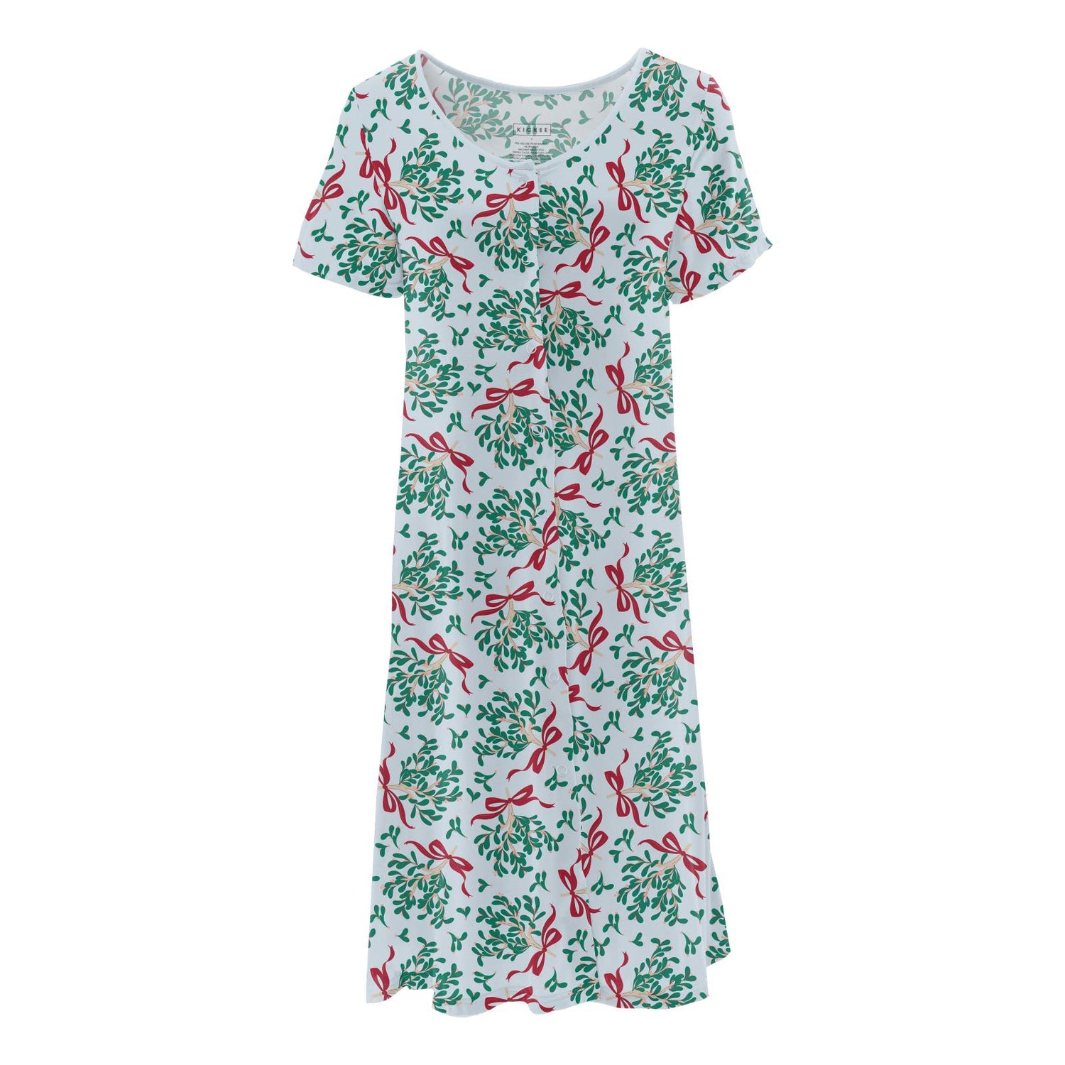 Women's Print Nursing Nightgown in Illusion Blue Mistletoe & Ribbons