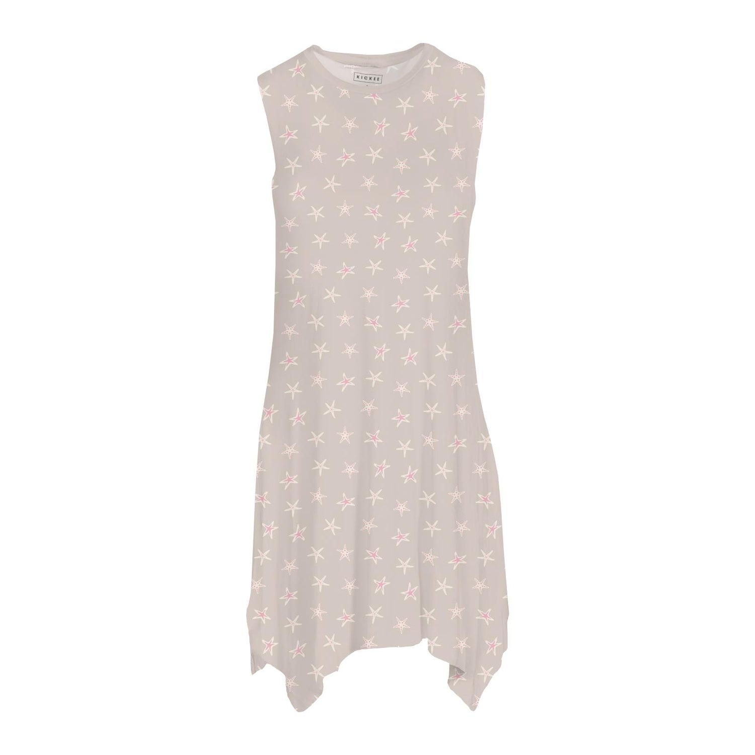 Women's Print Raw Edge Tank Dress in Latte Starfish