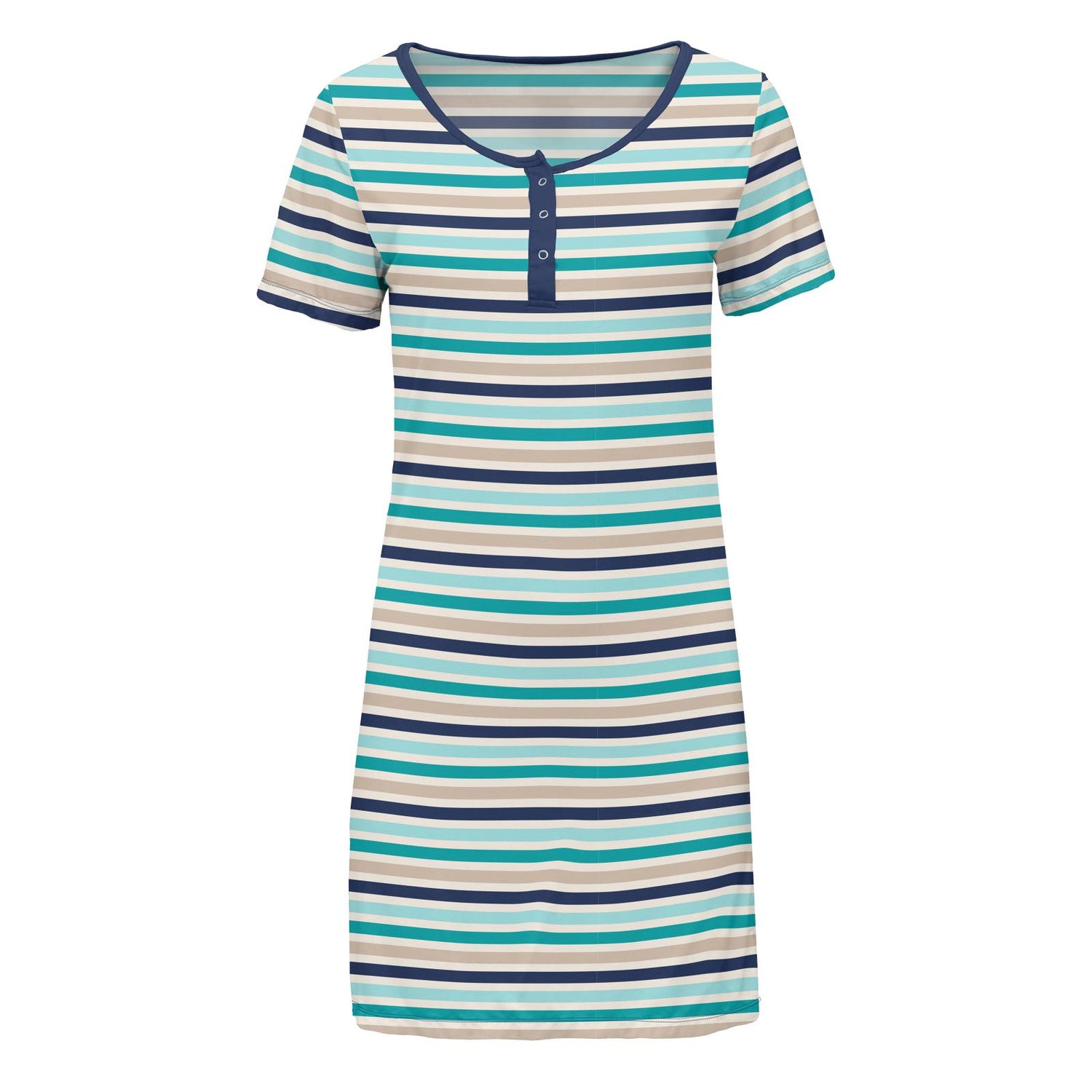 Women's Print Short Sleeve Nightshirt in Sand and Sea Stripe