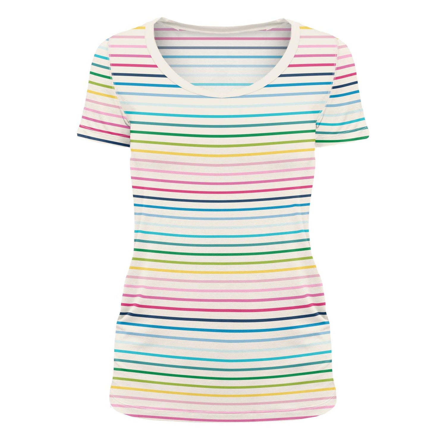 Women's Print Short Sleeve Scoop Neck Tee in Happy Stripe