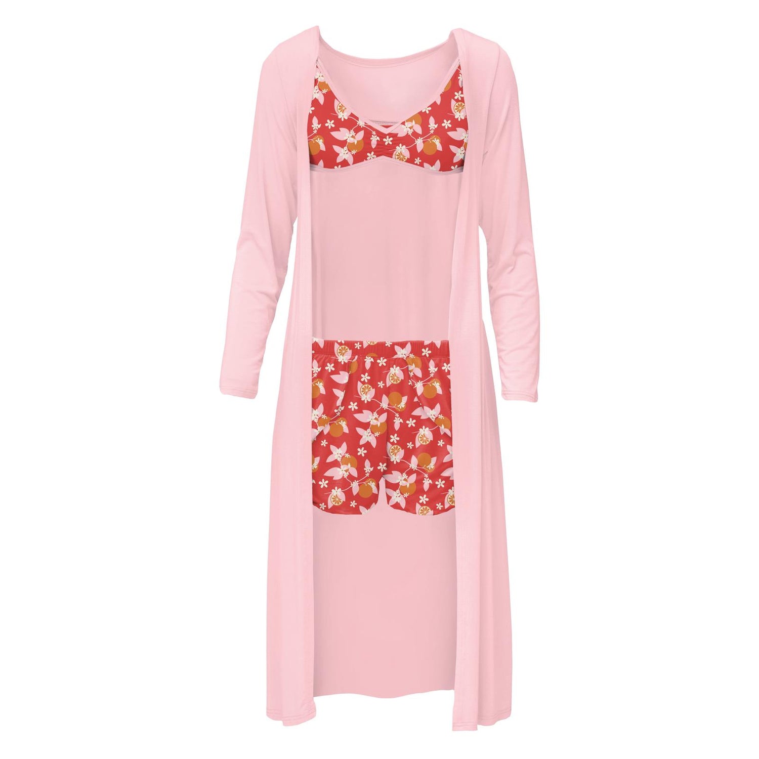 Women's Print Sleeping Bra, Tulip Shorts and Duster Robe Set in Poppy Orange Blossom