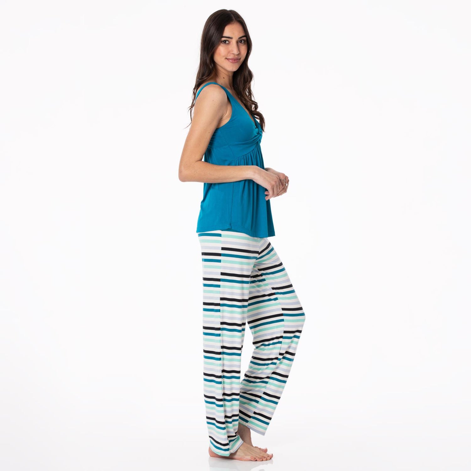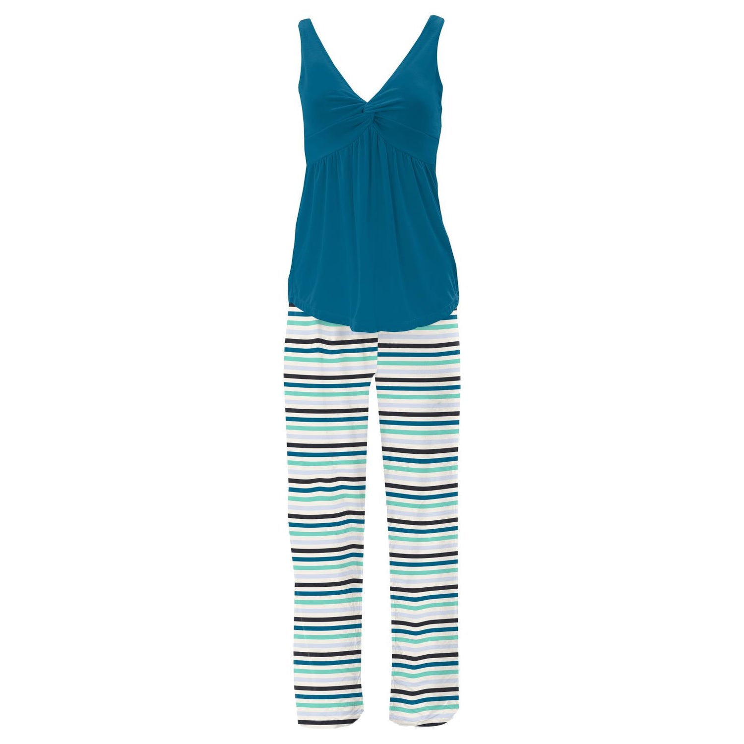 Women's Print Twist Tank and Pajama Pants Set in Little Boy Blue Stripe
