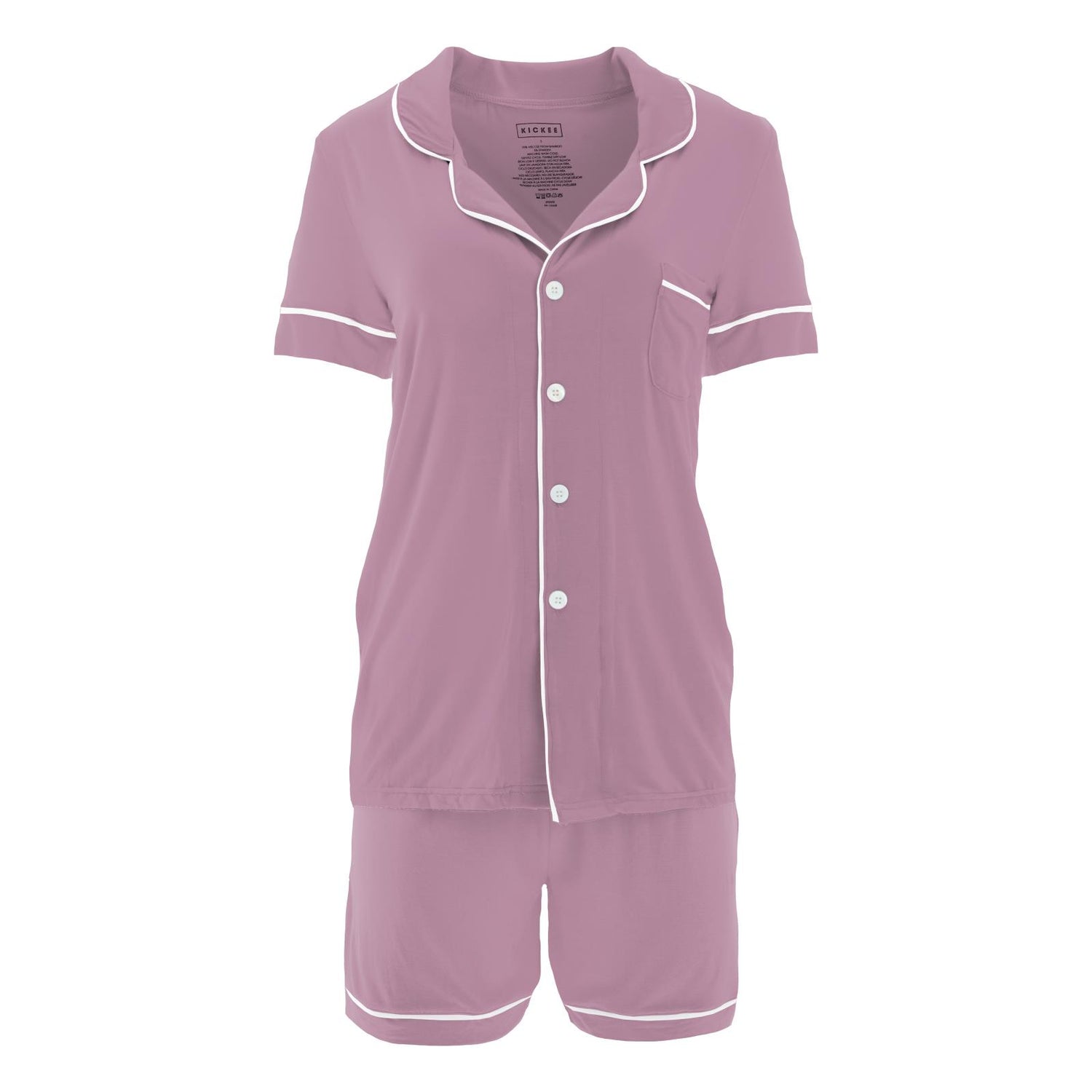 Women's Short Sleeve Collared Pajama Set with Shorts in Pegasus with Natural