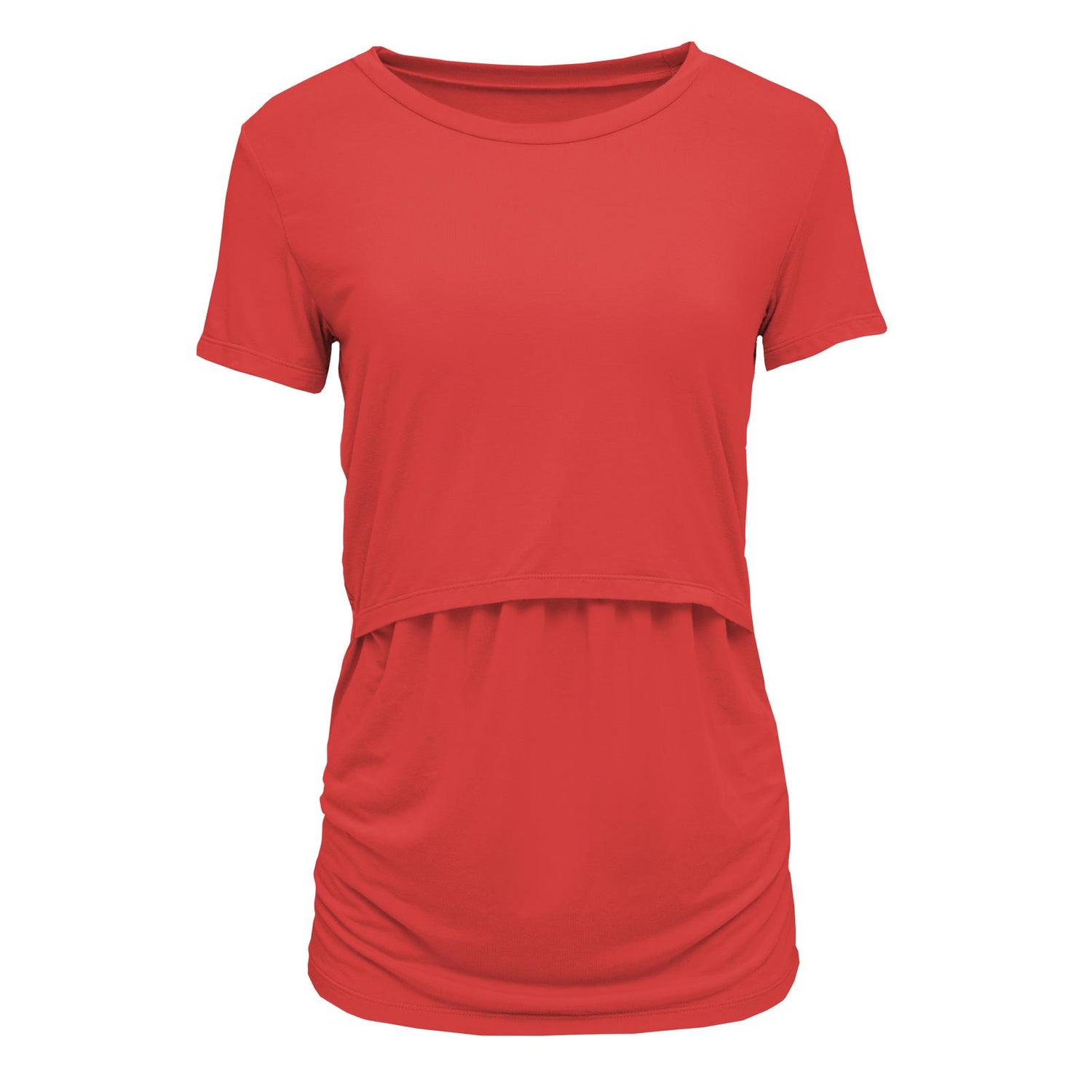 • Short sleeve, scoop neck nursing tee with half-layered, front nursing access.