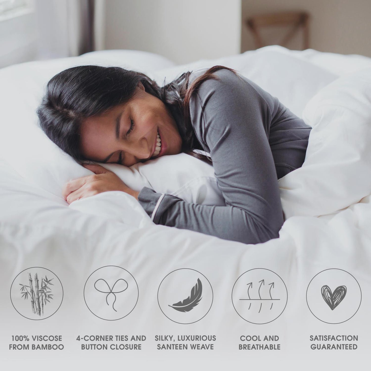 You're in for a cooler, softer, more restful sleep with our soft as silk duvet cover. Naturally temperature regulating viscose from bamboo fabric ensures you stay comfortable all night long (even if the kids sneak in for midnight cuddles!) Reinforced ties keep your comforter in place, and closure buttons add the perfect finishing touch.